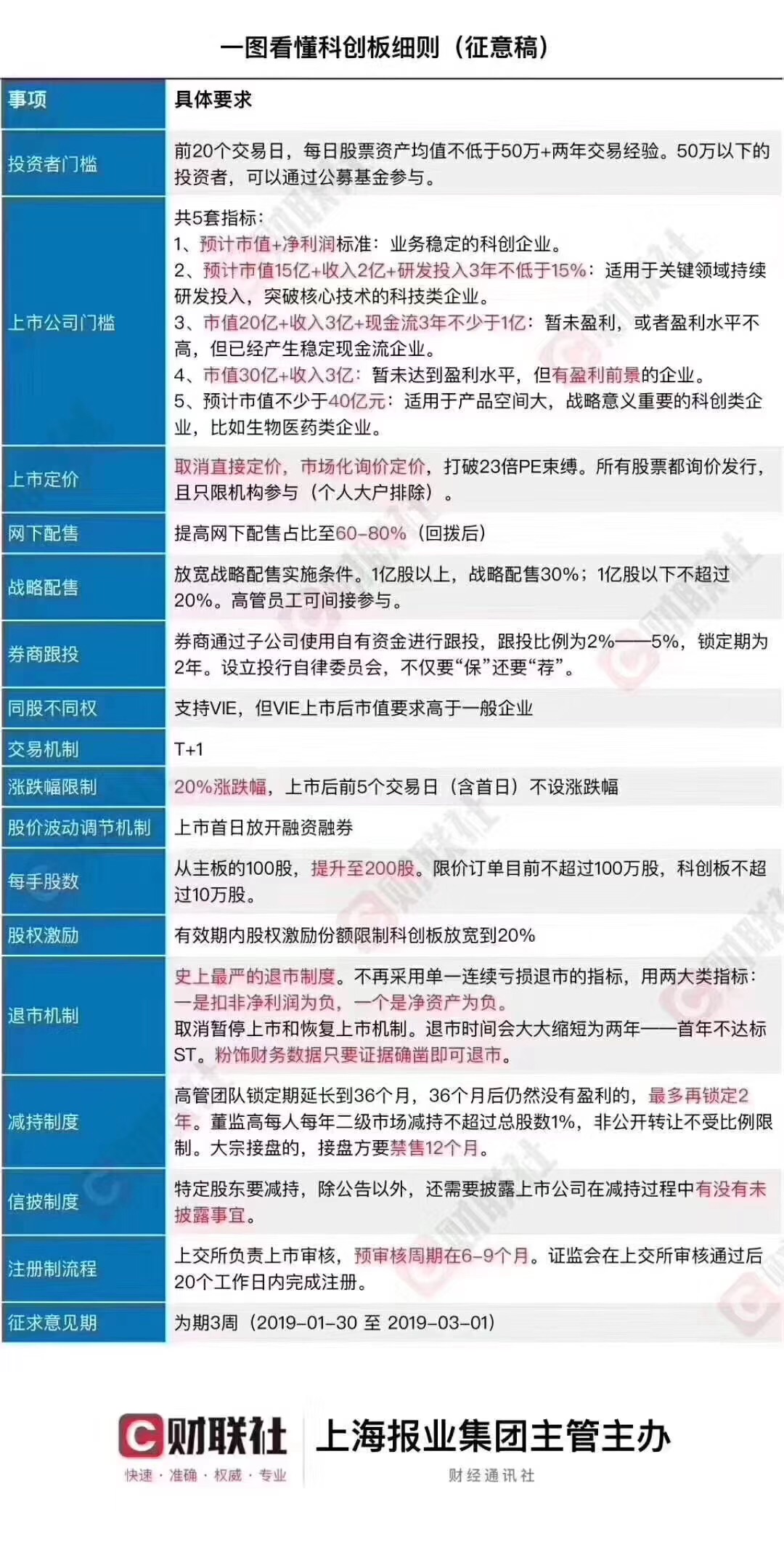 2019年1月30日晚間,中國政府法制信息網(wǎng)發(fā)布了《科創(chuàng)板上市公司持續(xù)監(jiān)管辦法(試行)》(簡稱《監(jiān)管辦法》),證監(jiān)會發(fā)布了《關于在上海證券交易所設立科創(chuàng)板并試點注冊制的實施意見》(簡稱《實施意見》),隨后,上交所也發(fā)布了《關于在上海證券交易所設立科創(chuàng)板并試點注冊制的實施意見》,明確了科創(chuàng)板改革的相關內(nèi)容,自發(fā)布之日起實施。