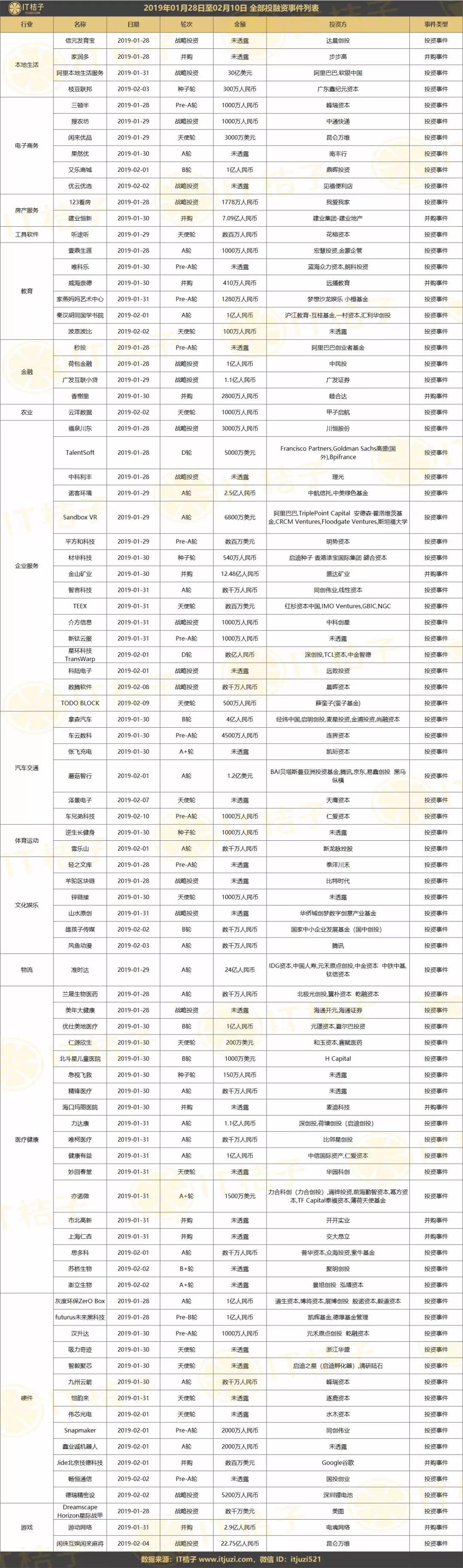 春節(jié)期間全部投融資事件列表: